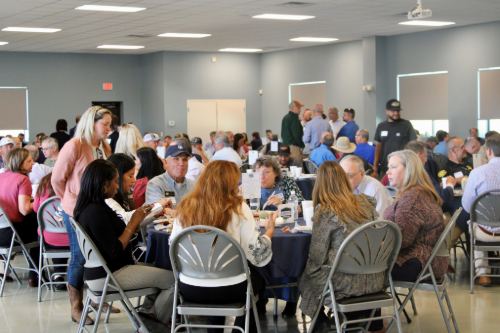 Hundreds of clients, suppliers, subcontractors, elected officials, and community leaders filled the K. Mark Oldham Training Center for this year’s event. The Sanford Contractors Leadership team prepared BBQ overnight, a true labor of love, while our longtime community partners, the Christian United Outreach Center of Lee County, volunteered to serve the plentiful sides prepared by Woodards Family BBQ in Broadway.